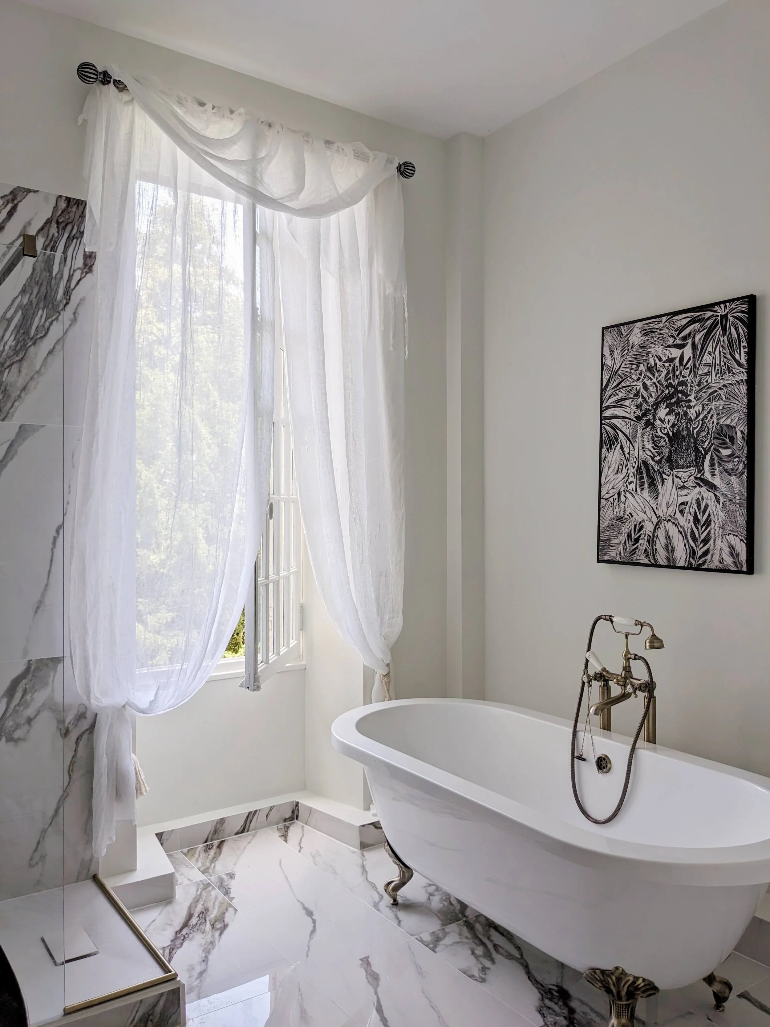 The large, double front doors take you into the long hallway with a set of wooden staircase that lead you to your bedrooms, each with their own impeccable, ensuite bathrooms.